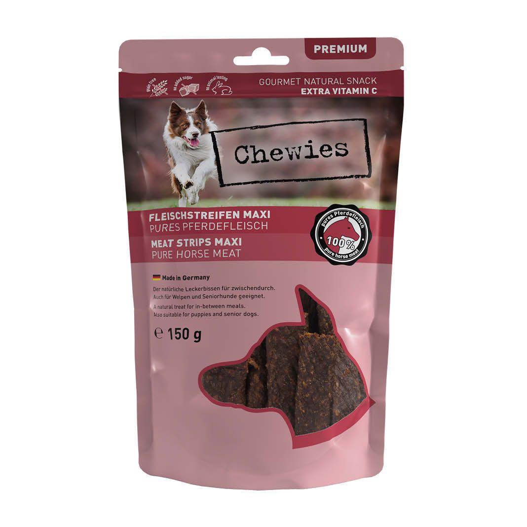 Als beliebter Snack für zwischendurch zaubern sie deiner Fellnase Zufriedenheit ins Gesicht. Von unseren Chewies Fleischstreifen gibt es zehn leckere Sorten in zwei Größen, MINI und MAXI, damit wirklich jeder Hund in den Genuss kommen kann. Welpen und die grauen Schnauzen lieben den aromatischen Fleischsnack ebenso, denn er kann ganz einfach in kleinere Stücke zerteilt werden.