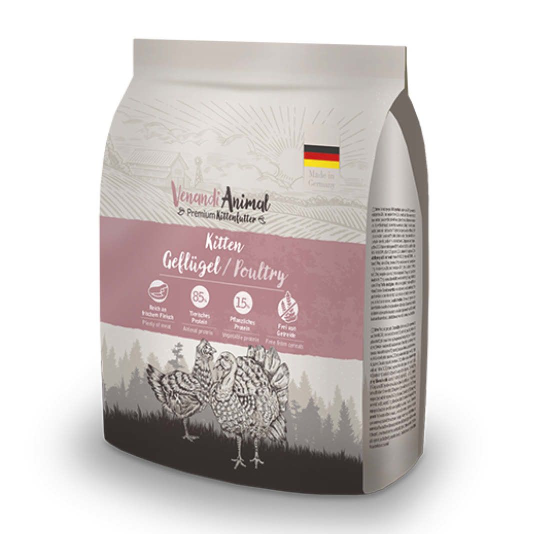 Der erste Fang - Venandi Trockenfutter für Junge Jäger ist auf die Ernährungsbedürfnisse Ihres Kätzchens abgestimmt. Der hohe Fleischanteil des Menüs ergibt sich aus hochwertigen Proteinquellen, was auch bei einer noch sensiblen Verdauung zu einer hohen Verträglichkeit führt. Durch seine ausgewogene und natürliche Rezeptur versorgt es Ihr Kätzchen in der Wachstumsphase mit allen wichtigen Nährstoffen. Vervollständigt mit feinstem Lachsöl und Schätzen der Natur, deckt es auf natürliche Weise den Bedarf an Vitaminen und Mineralstoffen für die beste Grundlage einer gesunden Entwicklung.